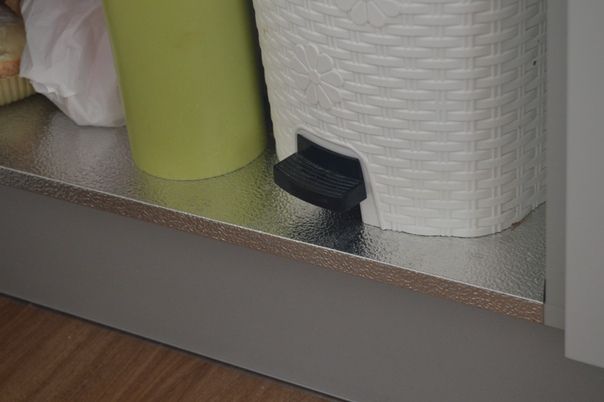 Рекомендуем в шкаф, где находится мойка установить алюминиевую подложку, чтобы защитить дно тумбы.